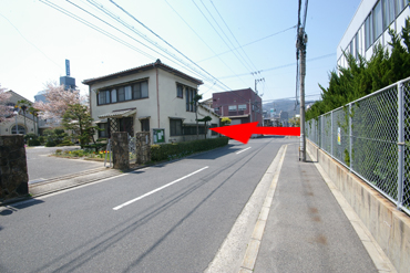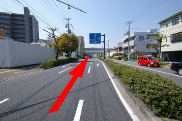 ②上野学園ホールのある十字路を、北大橋方面に進みます。※崇徳高校が右手に見えます。