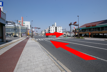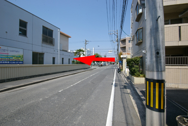 ①安田学院前の通りより、上野学園ホールの見える十字路に向かいます。
