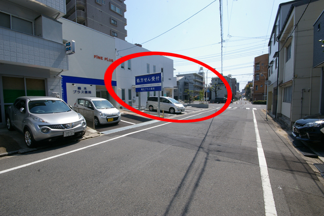 十字路まで進んで頂きますと、表通りにも駐車場がありますので、どちらかをご利用ください。